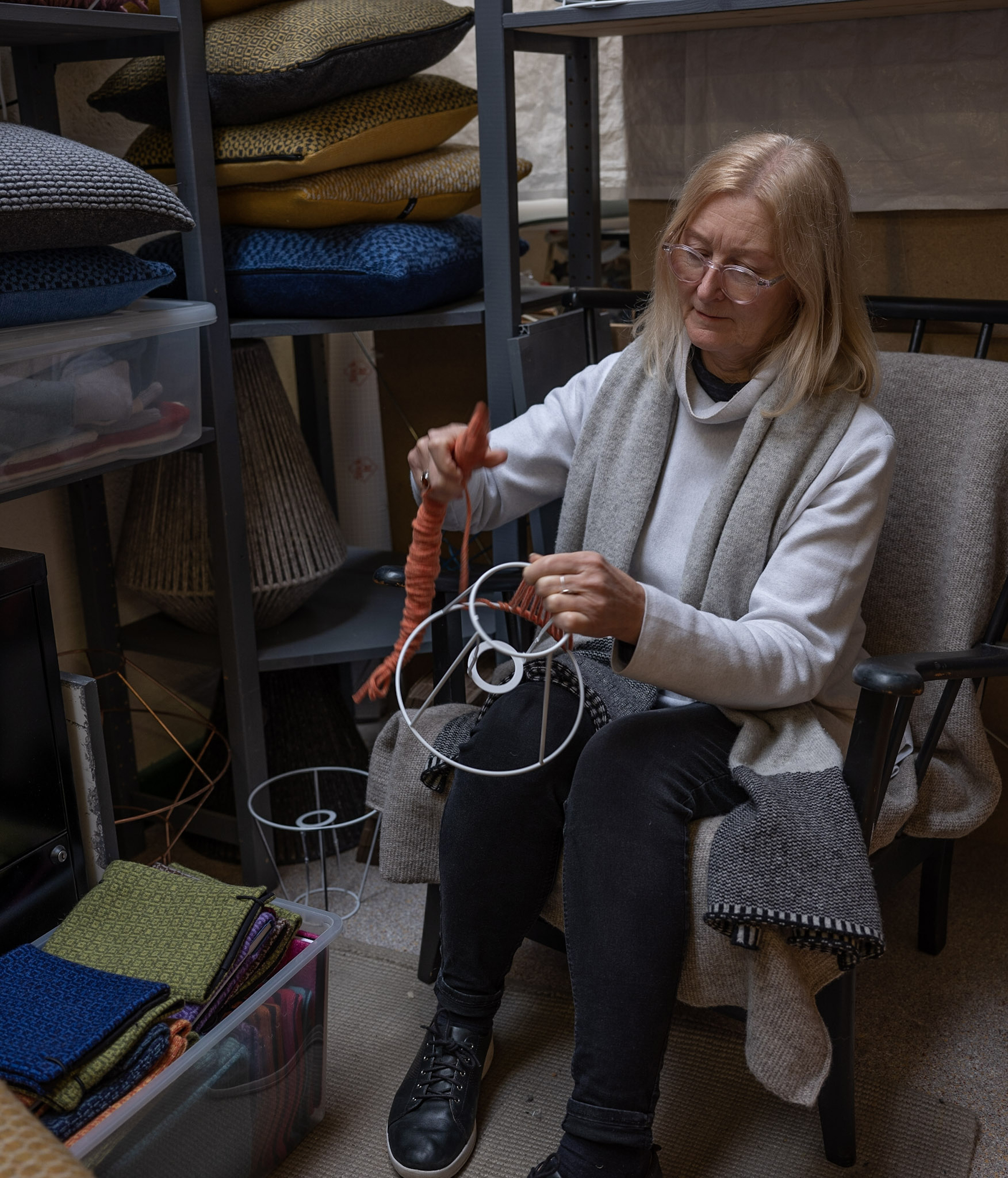The creative work in their practice is a direct response to environmental colours, textures and the materials they use and the inclusion of traditional techniques such as Nalbinding for their lampshade cords, together with a desire to develop concepts and ideas for interior products and lighting with an ethos of sustainability.