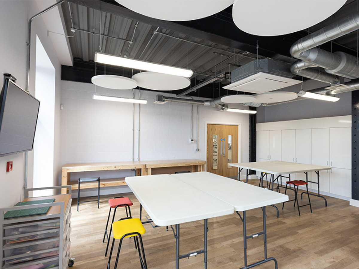 Located on the ground floor, our Workshop is a naturally lit space which has a beautiful riverside setting and view. The multi-purpose room is a dedicated space for craft activities and is the perfect setting for small educational events, creative groups, talks, meetings, and classes. The space can be arranged in a range of styles for both adult and children’s use.