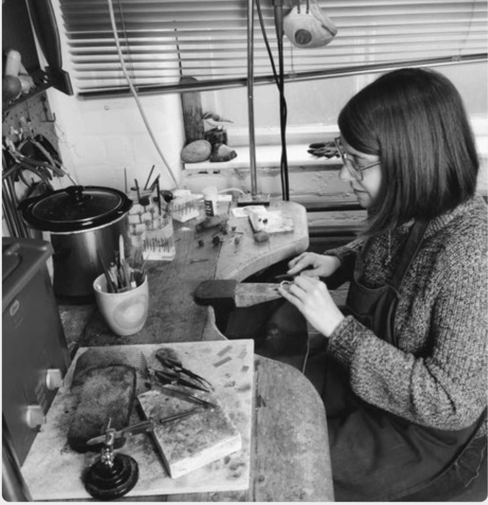 I like texturing pieces mainly because it involves hammers, which is good for getting out any stress! I also like controlling the silver with heat so it flows into organic shapes it’s quite tricky because too much and it melts into a ball.