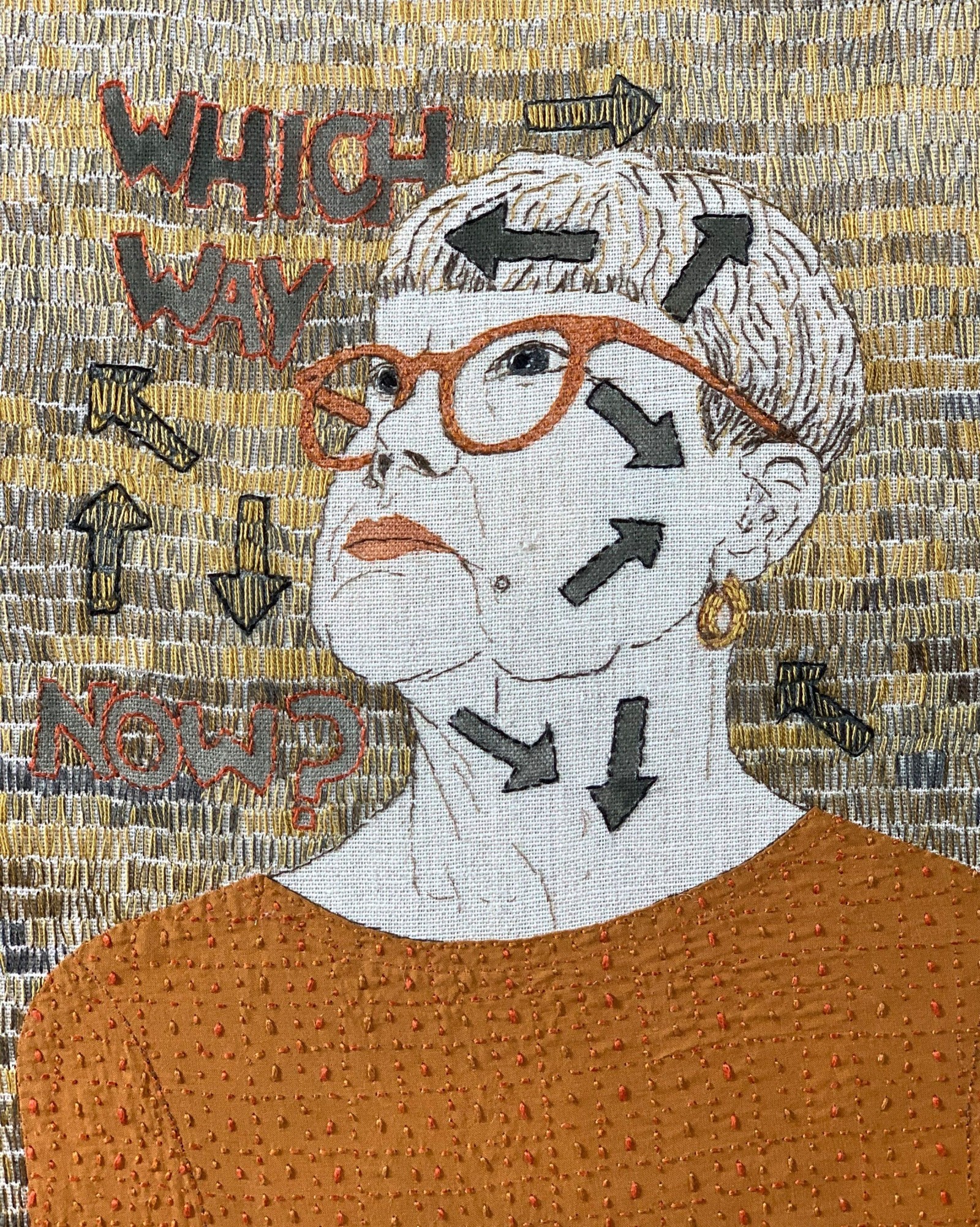 Sue studied embroidery at Goldsmiths College, London and since 2006 has exhibited her work worldwide. Previous visitors may remember seeing Sue’s work at the Hub in Ctrl/Shift in 2019 and Bending the Line in 2009.
